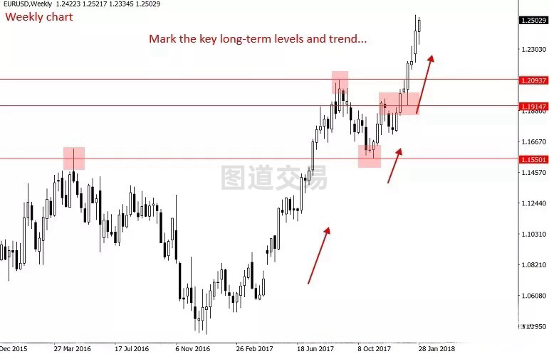 - 是否已缩小图表至周线范围并开始识别关键的长期支撑和阻力水平?