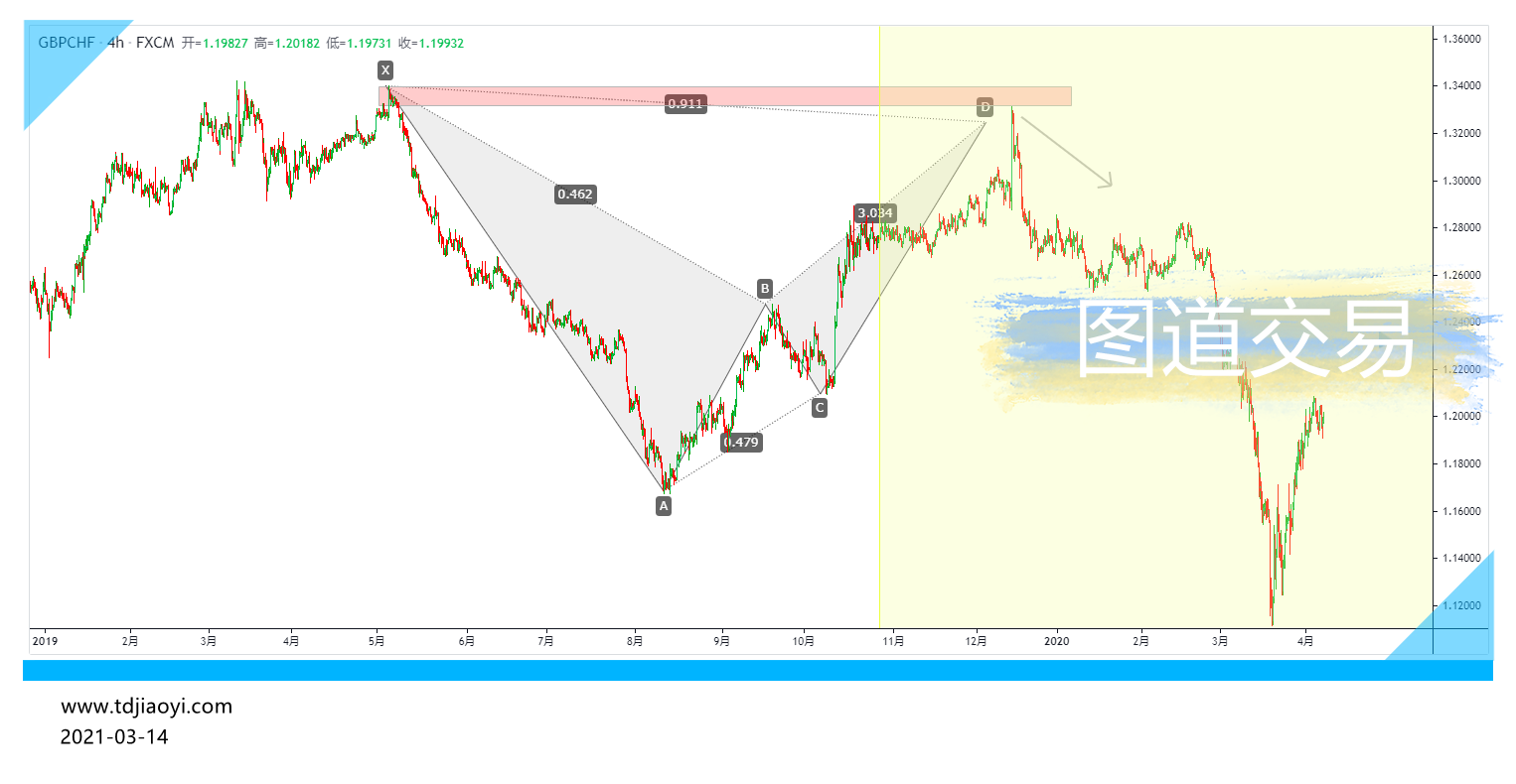 谐波形态的X点是一段行情的高低点,而这些位置某种意义讲本身就是供需区