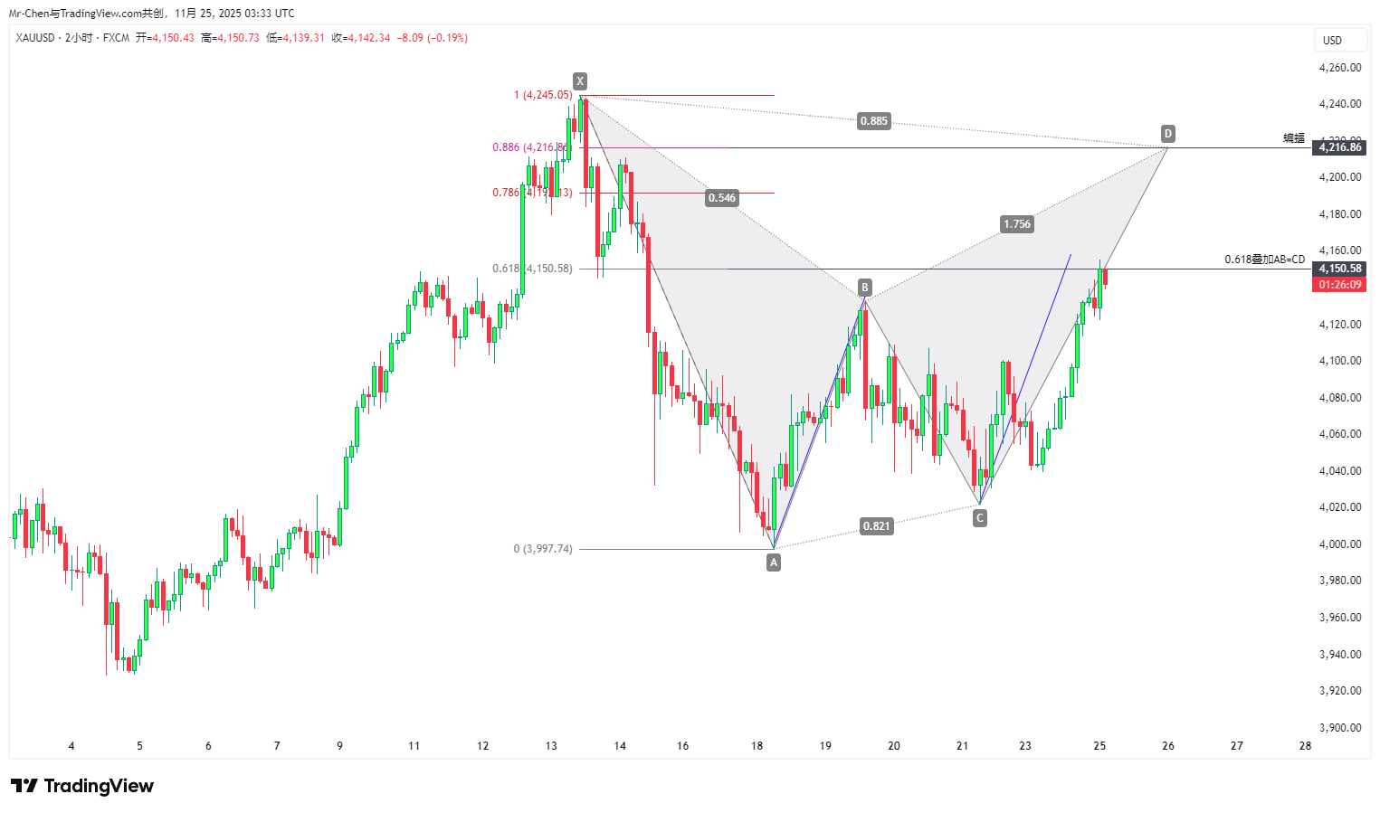 第一个位置:当前,0.618回撤位,同时AB=CD到位